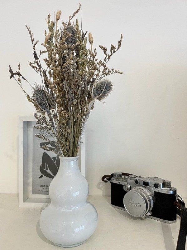 Medidas: 13cm alto (40 c/ramo) x 9cm diametro x 3cm boca.