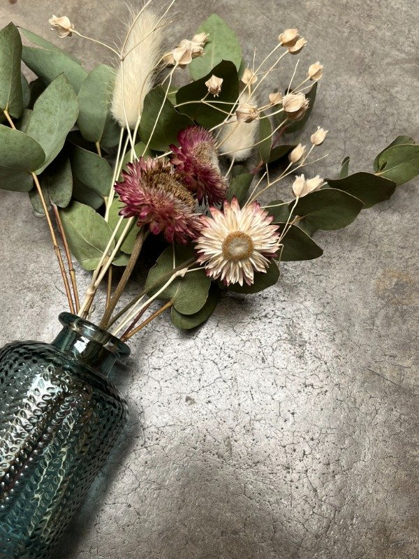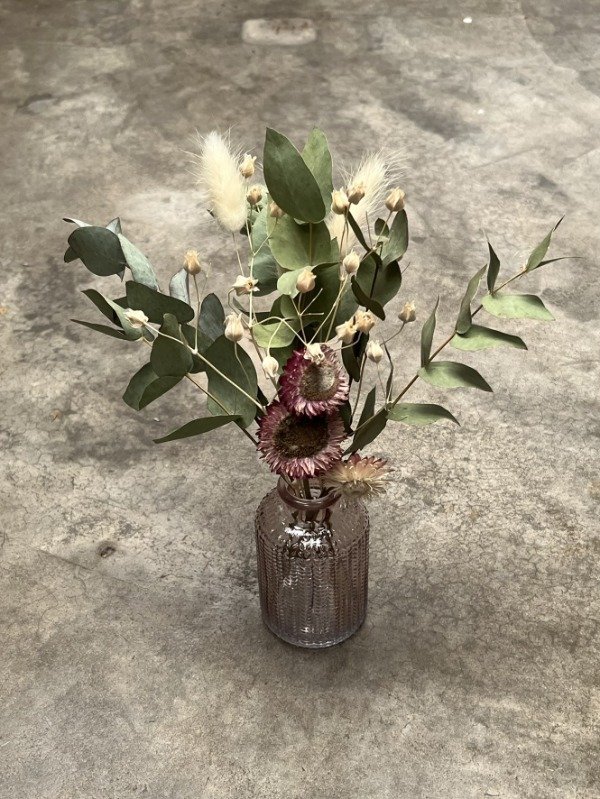 Composición: vidrio + flores preservadas