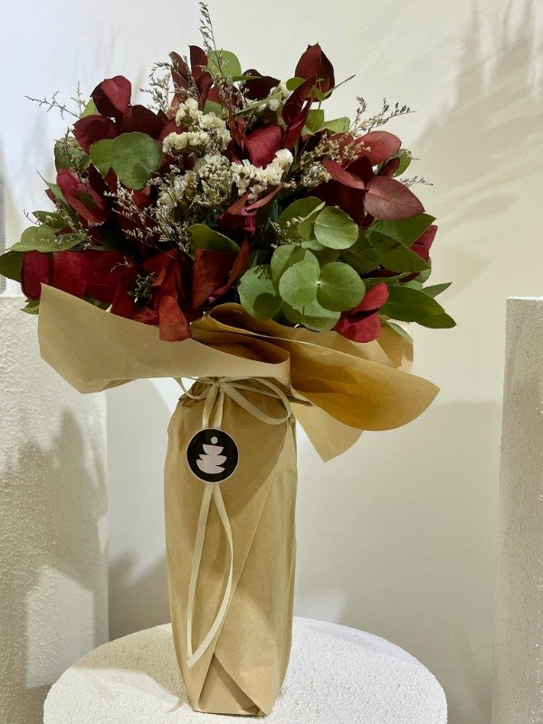 Composición: vino + arreglo floral .