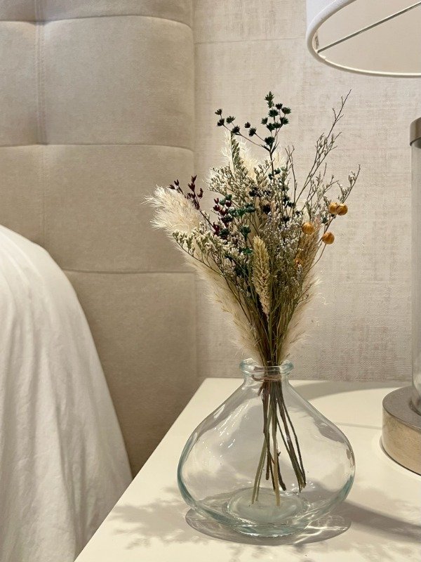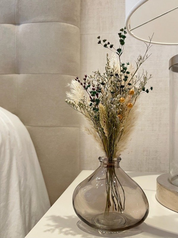 Medidas: 10cm alto (23cm c/ramo) x 11cm base x 2cm boca.